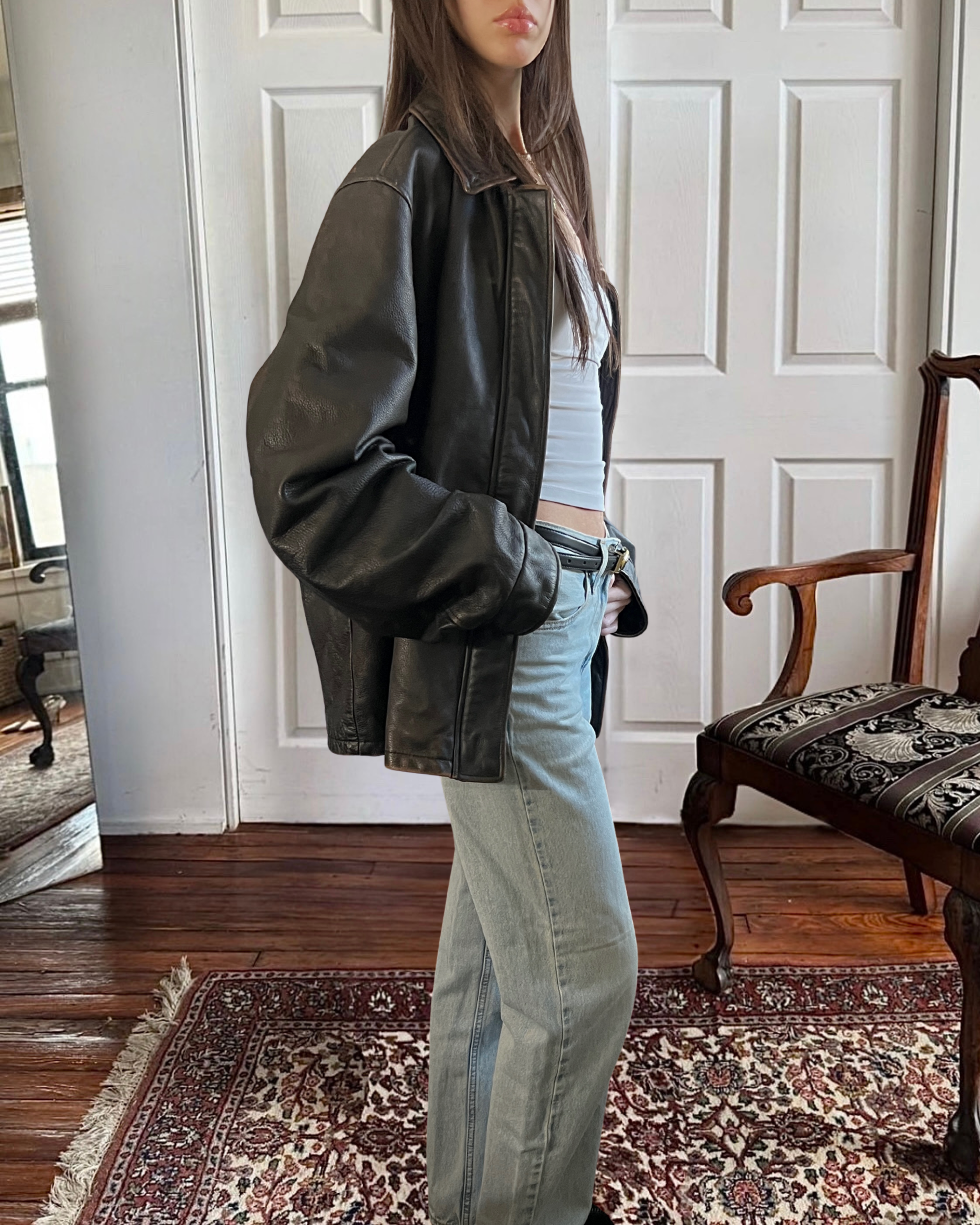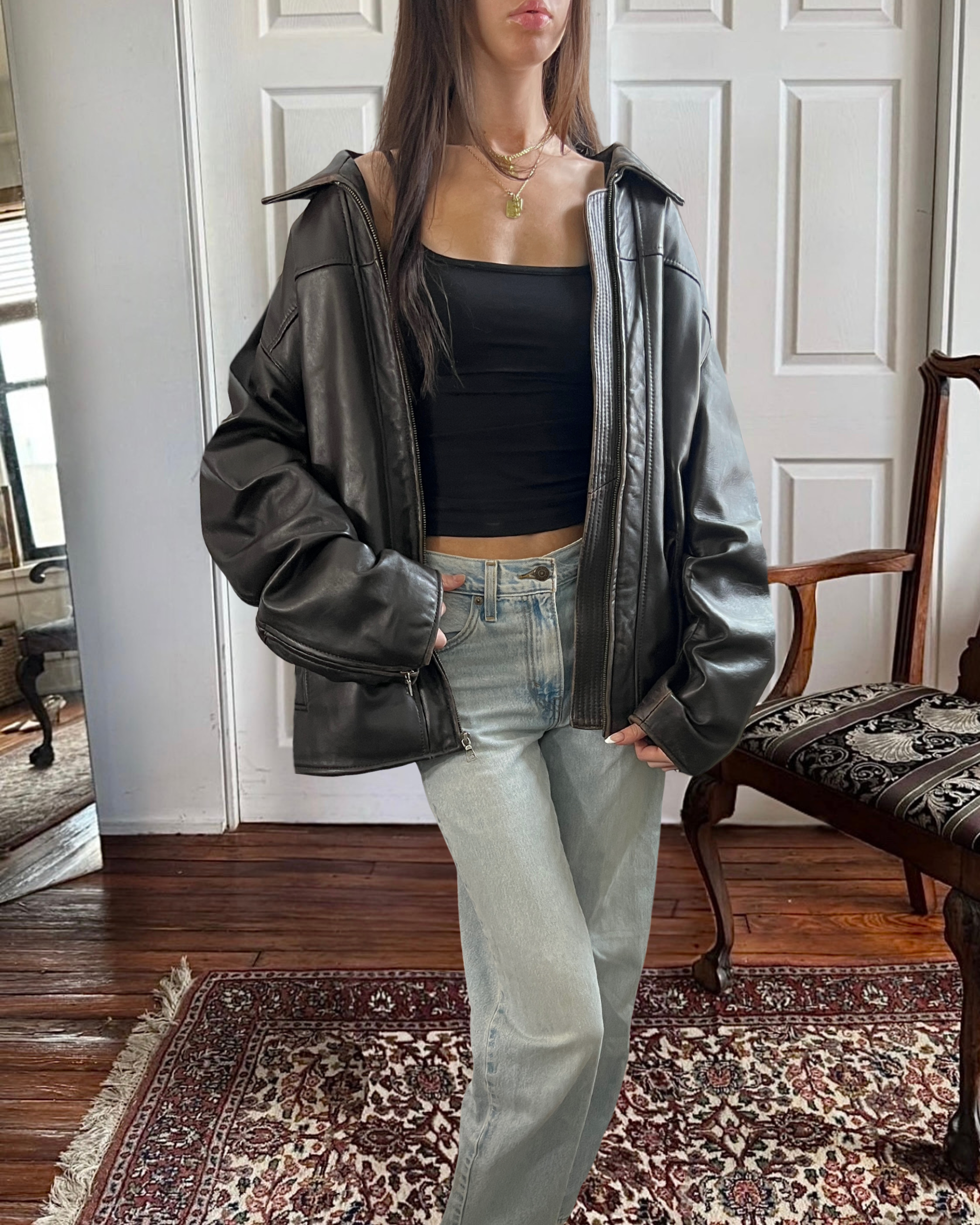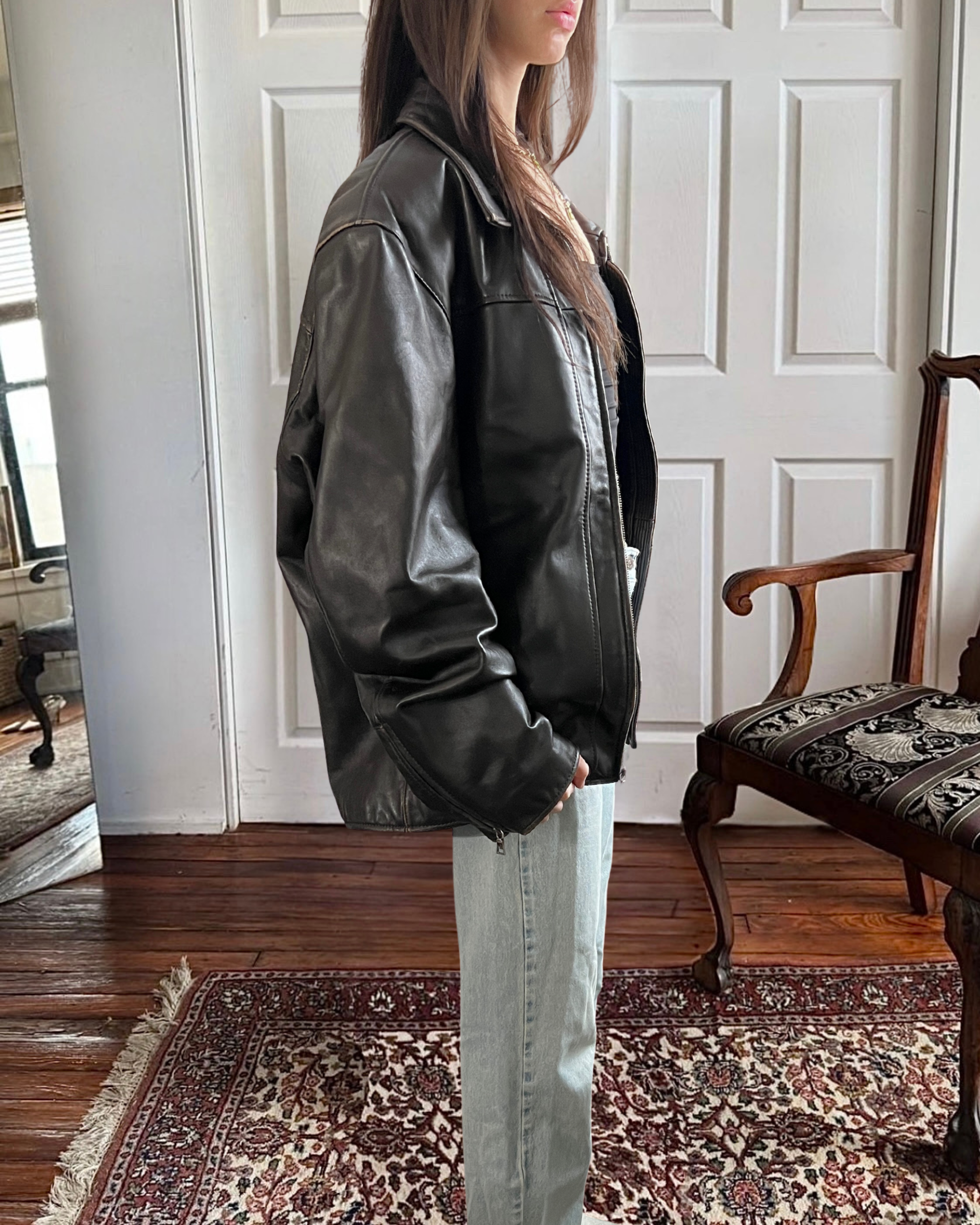 the most perfect black leather jacket ever, the perfect oversized fit, style, and condition ever