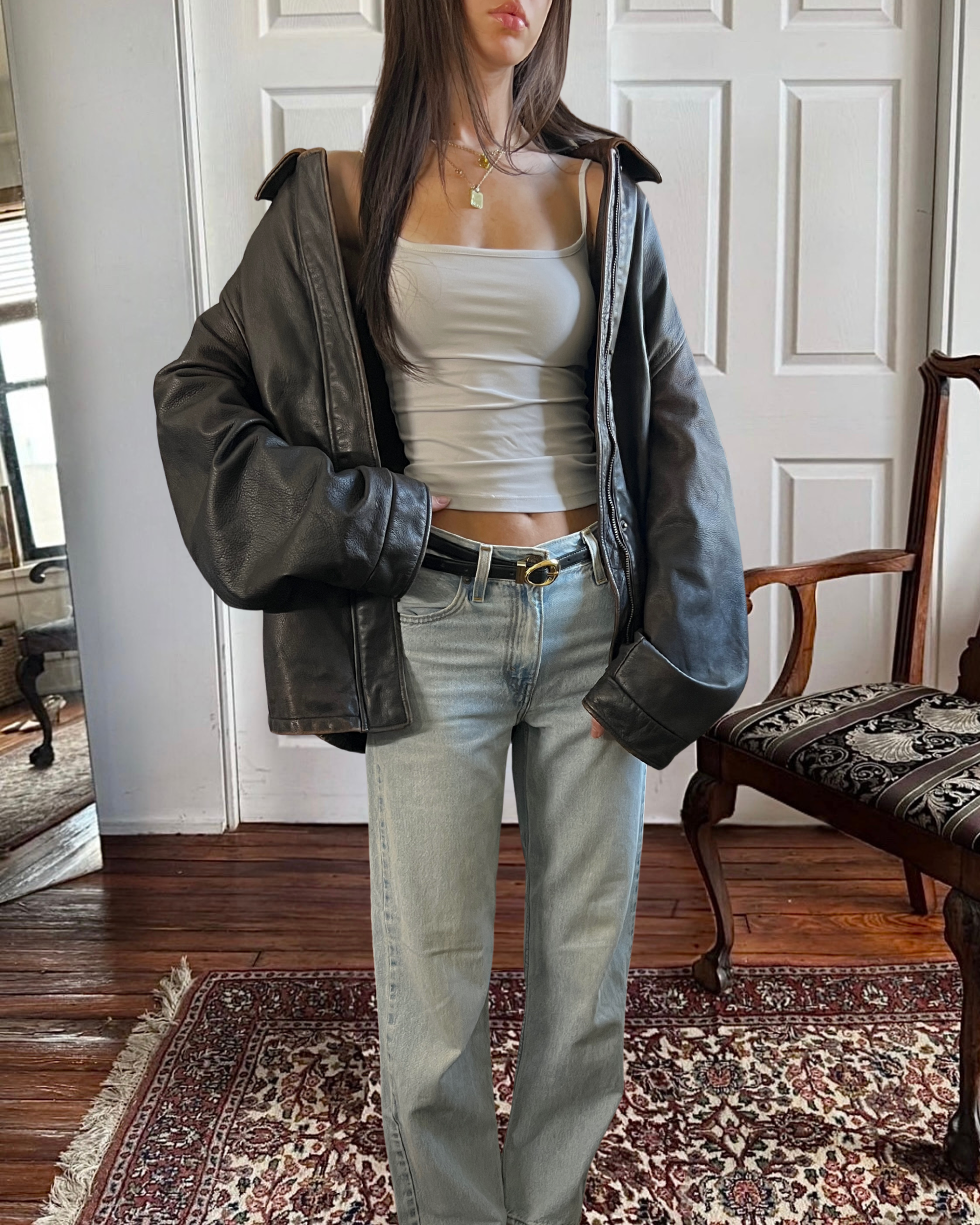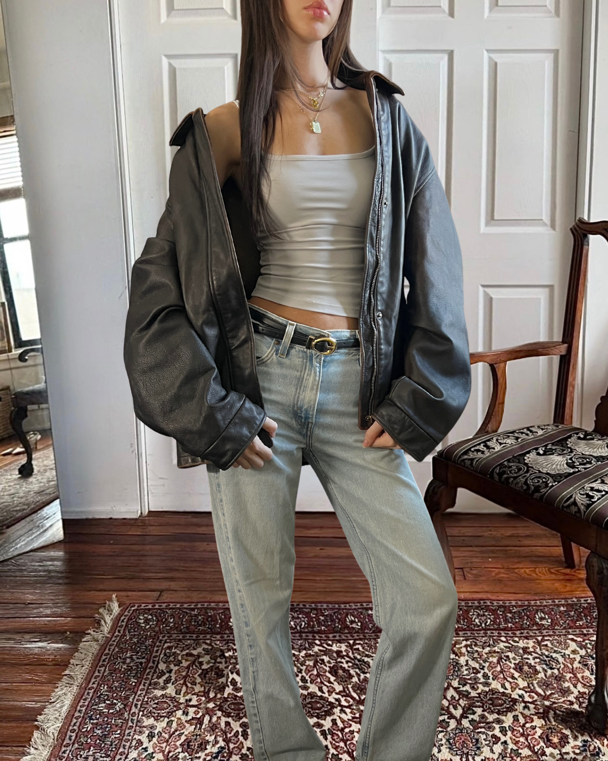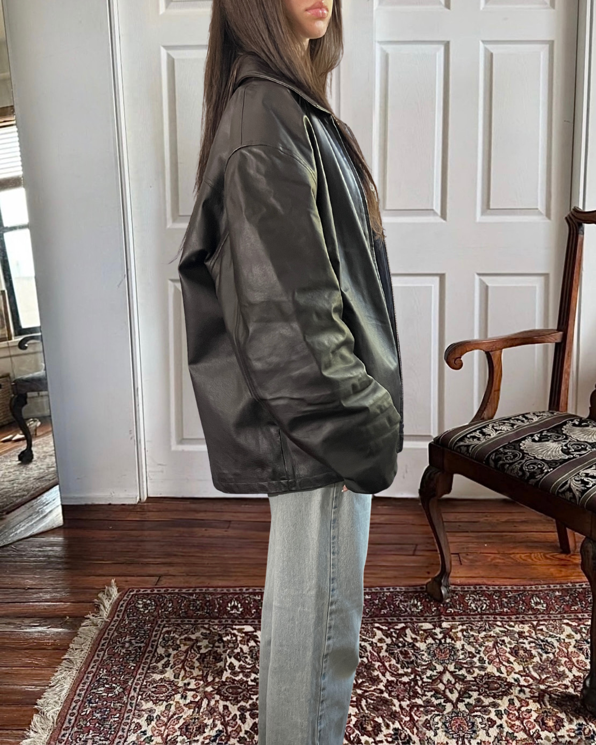 the most perfect black leather jacket ever, the perfect oversized fit, style, and condition ever